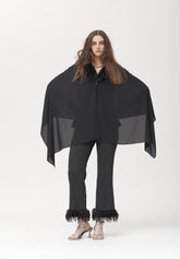 Capa en gasa con cuello tejido efecto pelo acabado en pluma- €122,00