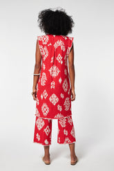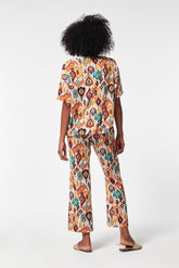 Pantalón acampanado con estampado Ikat, sin bolsillos y con goma en la cintura.Largo 69cm y ancho (bajo) 29cm.La modelo mida 1.78m.- €48,00