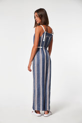 Mono amplio en lino-viscosa, con tirantes y cinta para ajustar la cintura. Bolsillos laterales pespunteados.La modelo mide 1.75m.- €86,00