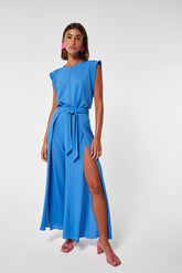 '- Vestido midi de viscosa.- Aberturas laterales en el bajo.- Cintura ajustable elástica.- Tirante fino con hombro al aire y manga corta.- Escote con cordón ajustable.- €69,00