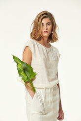 Top cuello halter en jacquard, con lágrima en el escote y bajo redondeado desigual- €67,00