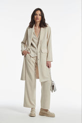 Chaqueta amplia en lino-viscosa, con solapa, bolsillos plastrón y puntas redondeadas. No tiene forro.La modelo mide 1.75m.- €89,00