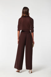 Pantalón ancho satinado, con cinturilla, nervio para estilizar y cierre central con cremallera. Sin bolsillos.La modelo mide 1.72.m.- €64,00