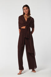 Pantalón amplio, con gomas en la cintura, en gasa.Largo 77cm y ancho (bajo) 35cm.La modelo mide 1.75m.- €54,00