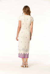 Vestido midi cruzado en punto estampado, con escote pico y lazada lateral. Igual al SINAL4 pero con manga corta.Aberturas laterales. Altura modelo 1.78cm- €107,00