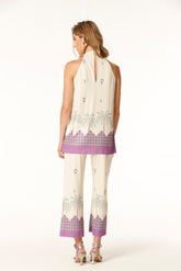 Top con cuello halter y lazada en punto estampado.5cm. mas lasgo que el top 1038-MARTINA.- €69,00