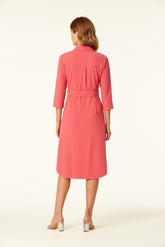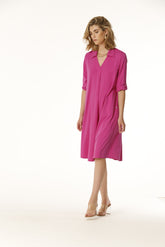 Vestido evasé en punto roma ligero, con manga al codo y escote pico con cuello. Altura modelo 1,80cm- €119,00