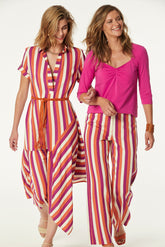 Pantalón en viscosa de rayas multicolor. No tiene bolsillos ni cinturilla. Ancho de 26cm- €99,00
