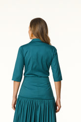Top amplio de escote pico y manga corta, con pequeño pliegue en centro delantero- €76,00
