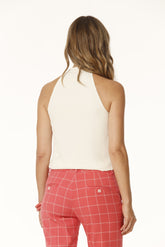 Top cuello halter en jacquard, con lágrima en el escote y bajo redondeado desigual- €67,00