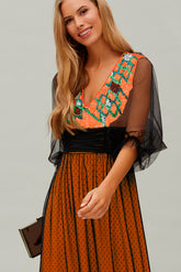 Vestido de estampado floral con lazo extraíble en el hombro, cuello redondo, manga larga y espalda abierta.- €95,00