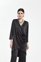 Wrapped and asymmetrical blouse, crossed and with side draping. With V-neckline and French sleeves. The model's height is 1.70m.- €63,00