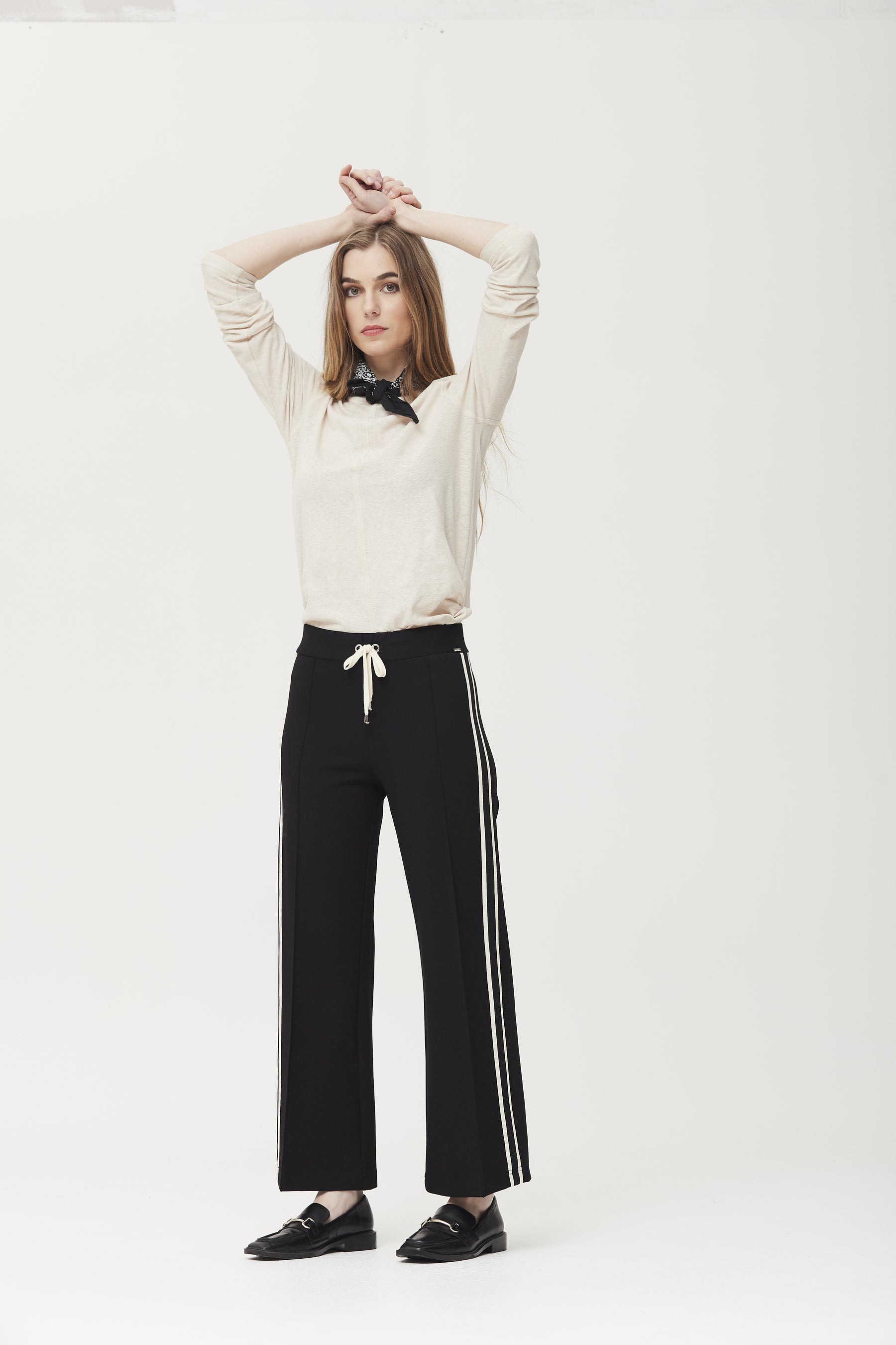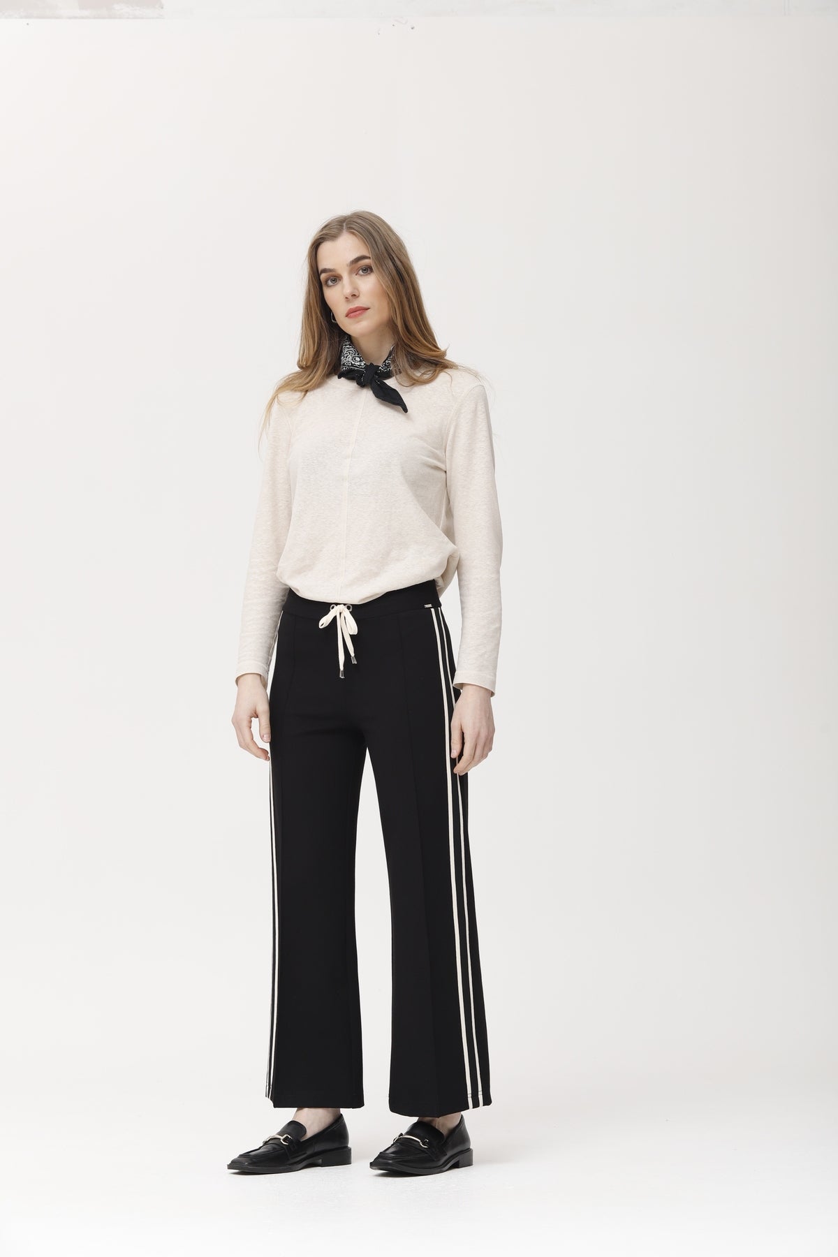 T-shirt en maille de lin beige clair, à col rond et manches longues. Son tissu doux et léger offre confort et une coupe décontractée, idéal au quotidien. Parfait avec un pantalon ou une jupe décontractée, c'est un basique polyvalent qui s'adapte à toutes les saisons.