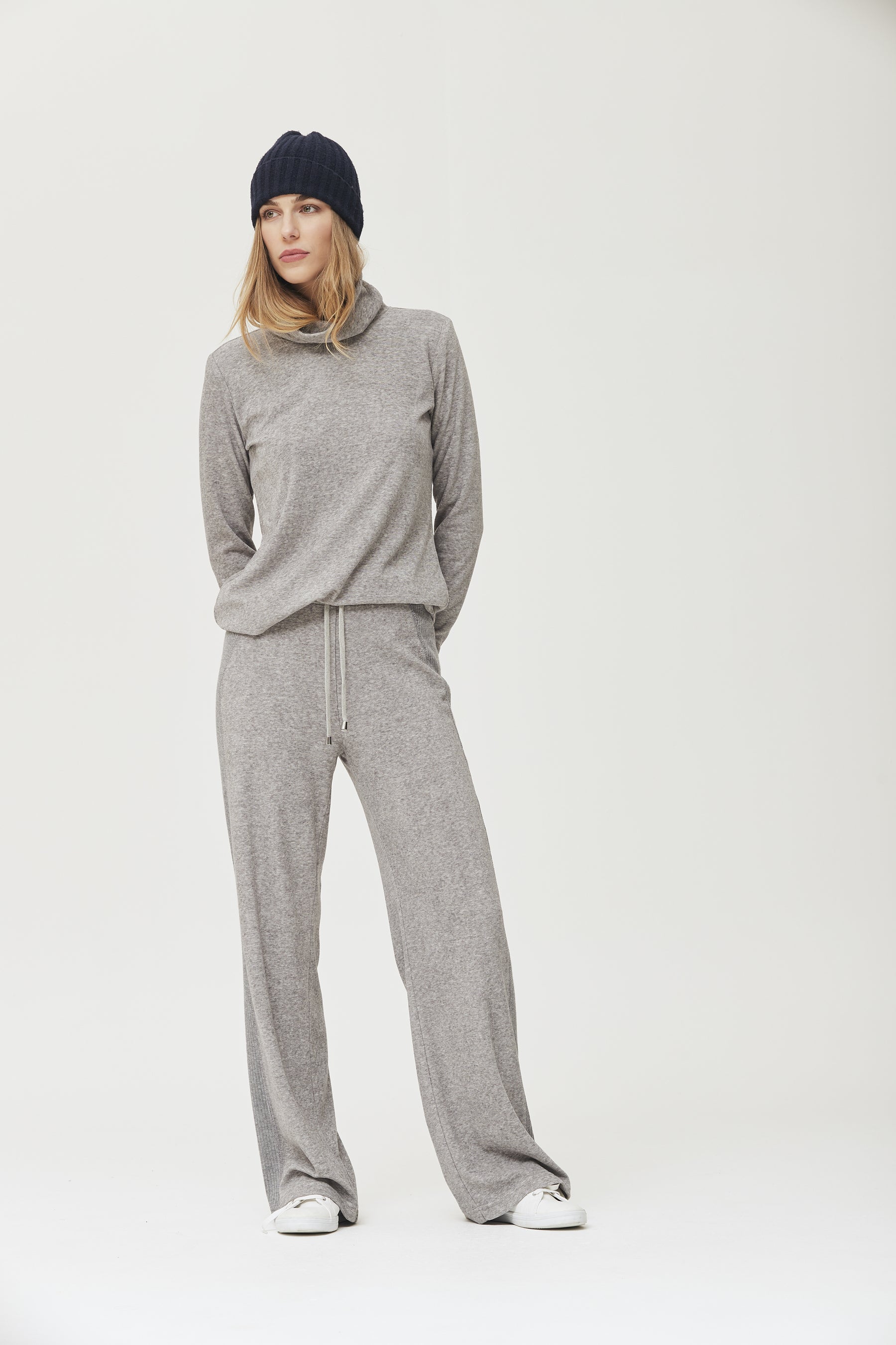 Ce pull en maille fine gris clair est confectionné dans un mélange doux et extensible. Il possède un col roulé, des manches longues et une coupe droite, ce qui le rend idéal pour des looks confortables et décontractés. Sa matière légère et chaude en fait un indispensable de votre garde-robe, parfait avec des pantalons amples, des jeans ou des jupes pour des tenues décontractées et urbaines.