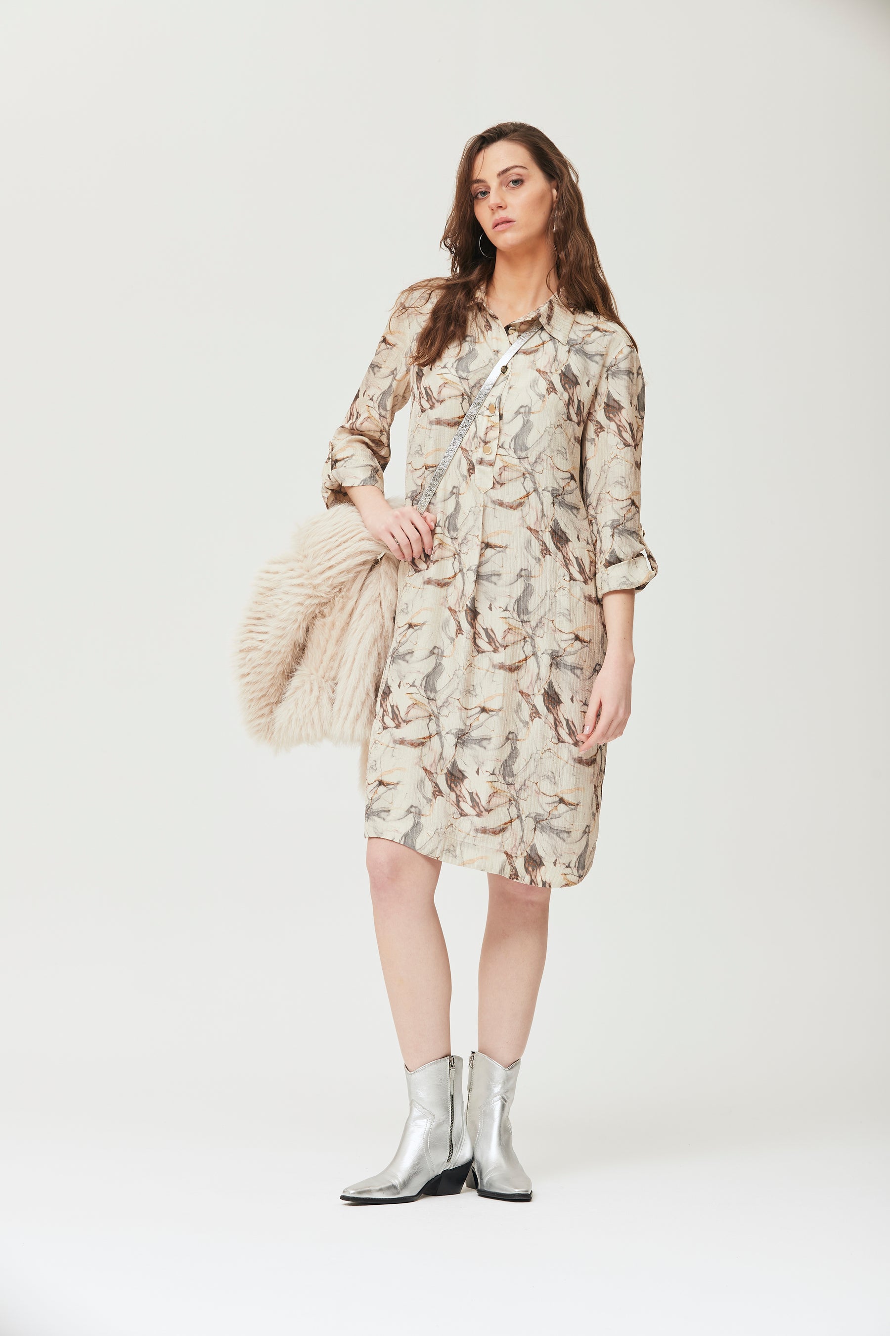 Vestido Camisero Manga Larga. Altura Modelo 1,75Cm